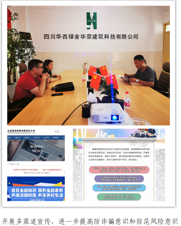 9月以來,市擔(dān)保公司結(jié)合實(shí)際情況,采取線上線下的方式,一方面通過公司的門戶網(wǎng)站、微信公眾號,轉(zhuǎn)發(fā)金融知識普及月的相關(guān)知識,提升防范化解金融風(fēng)險的意識,積極營造清朗金融網(wǎng)絡(luò)環(huán)境;另一方面通過加強(qiáng)盡職調(diào)查、財務(wù)分析、職業(yè)道德、業(yè)務(wù)技能、思想品德等方面的集中培訓(xùn),強(qiáng)化職工職業(yè)素養(yǎng)和業(yè)務(wù)水平,為廣大中小企業(yè)和“三農(nóng)”提供更加優(yōu)質(zhì)便捷的金融服務(wù),切實(shí)緩解“融資難、融資貴”等問題。同時,公司客戶經(jīng)理在外出辦理業(yè)務(wù)時,也積極向廣大客戶進(jìn)行宣傳,進(jìn)一步提升中小企業(yè)業(yè)主和農(nóng)戶的金融素養(yǎng),提高防詐騙意識和防范風(fēng)險意識,切實(shí)維護(hù)了金融消費(fèi)者的合法權(quán)益。