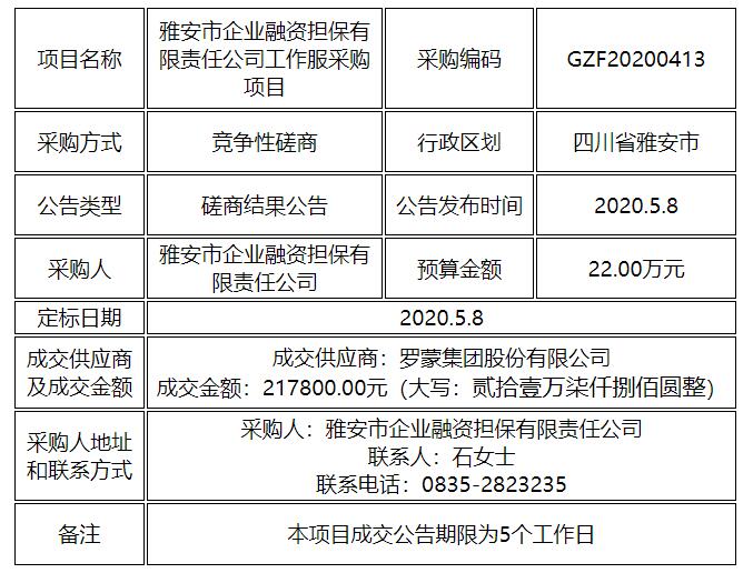 工作服采購項(xiàng)目競(jìng)爭性磋商結(jié)果公告
